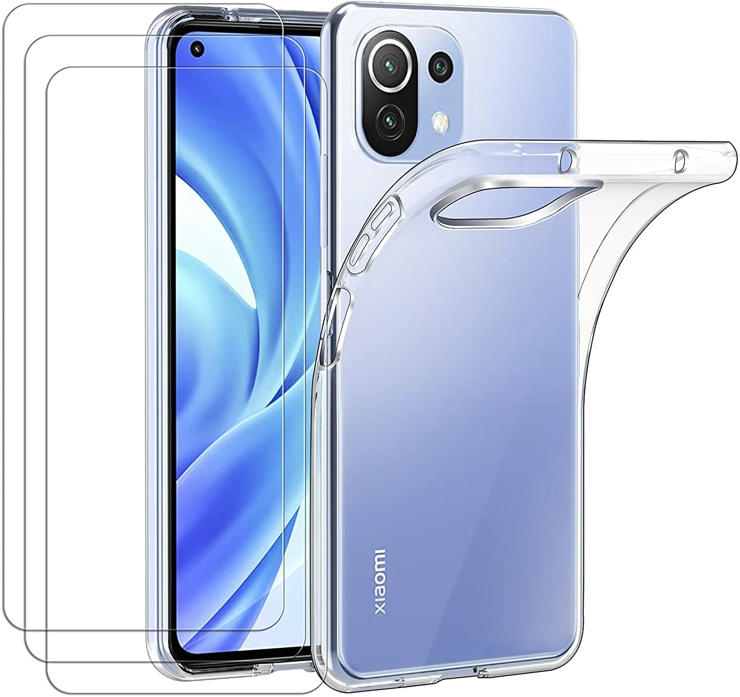 Hülle + 3X Schutzglas für Xiaomi Mi 11 Lite Glasfolie Slim TPU Case Tasche 9H