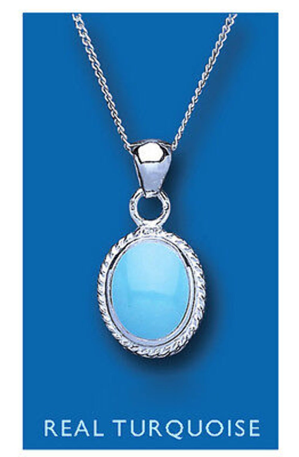 Sterling Silber Echt Türkis Oval Anhänger & Kette. Komplett mit 18" Sterling Silber Kette. Set mit echtem Türkis. Sterling Silber.