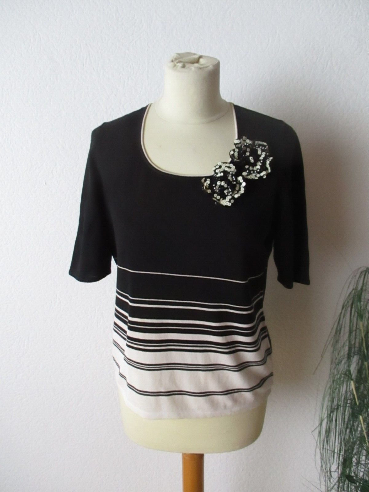 Betty Barclay Damen Pullover Gr. 38-40 schwarz-weiß kurzarm