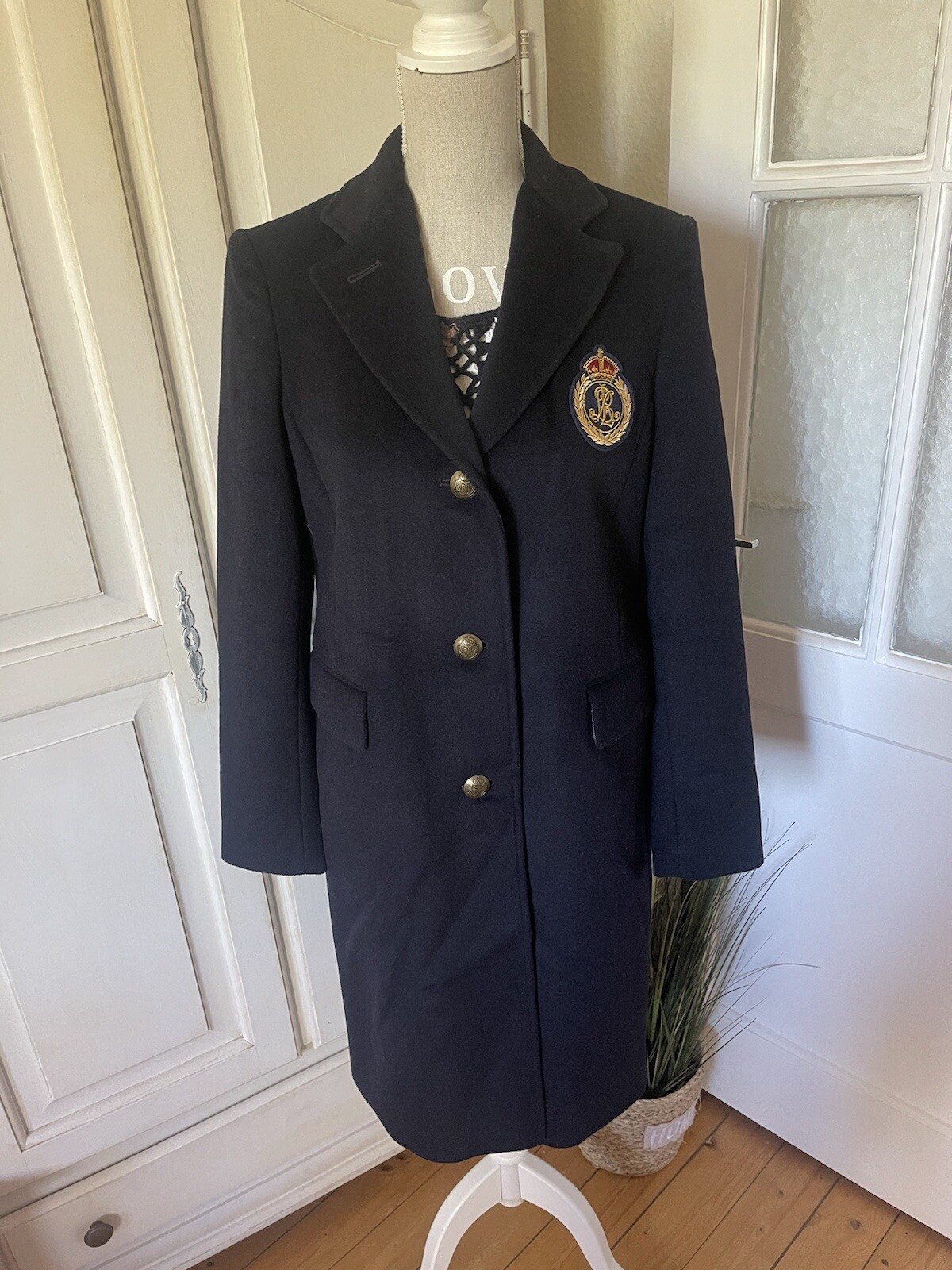 Der dunkelblaue Kurzmantel von LAUREN RALPH LAUREN ist ein elegantes Kleidungsstück für die kalten Jahreszeiten. 100% Original. Hergestellt in Italien aus hochwertiger Wolle mit Kaschmir-Anteil bietet er nicht nur optimalen Tragekomfort, sondern auch zeitlose Eleganz. Mit seinem klassischen Schnitt, langen Ärmeln und Knopfverschluss verleiht der Mantel jedem Outfit eine stilvolle Note. Perfekt für den Winter und Herbst, ist dieser Mantel ein Must-Have für jede Damen-Garderobe,sehr edel . Größe 6 /38 Brustweite 48cm Länge 97cm Neu mit Etikett,kam leider nie zum Einsatz gekommen. Tolle edel Knöpfe, Logo vorne . Privatverkäufer keine Rücknahme oder Garantie! Hoher Neupreis!600€-800€