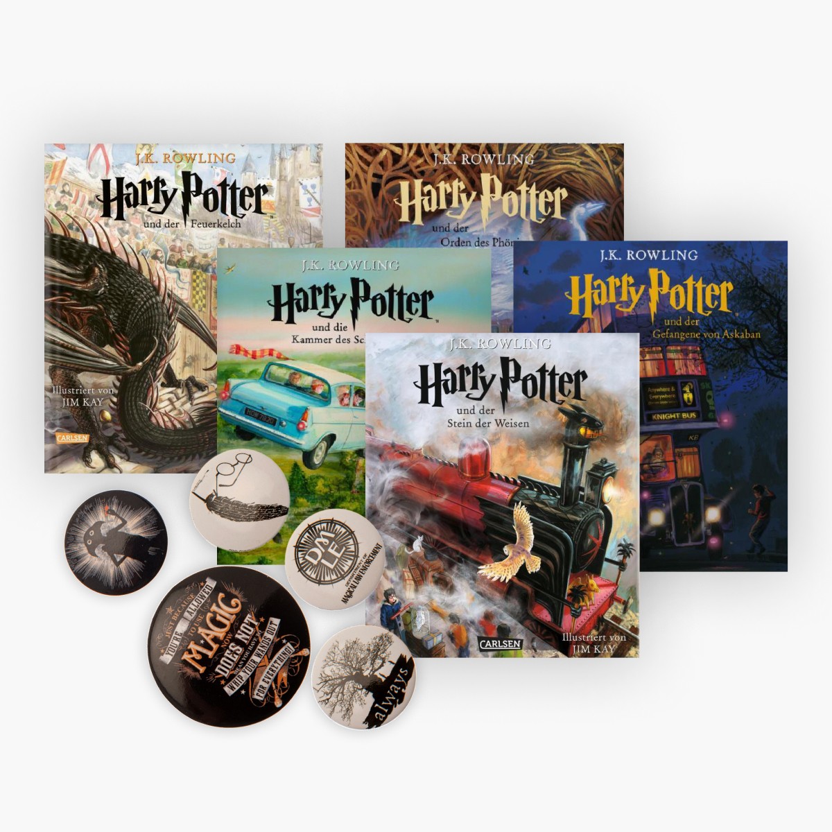 Titel: Illustrierte Schmuckausgaben Harry Potter Band 1-5 plus 1 original Harry Potter Button Badge Pack, Einband: hardcover, Autor: Joanne K. Rowling, Verlag: Carlsenverlag, Sprache: Deutsch, Seiten: 1879, Maße: 310x220x190, Gewicht: 9637 g, Verkäufer: bochumer-buchshop, Schlagworte: harry potter schmuckausgabe kinderliteratur jugendliteratur zauberwelt zauberei hogwarts ron weasley hermine granger lord voldemort albus dumbledore filmreihe fantasy illustrator jim kay neil packer zauberlehrling zauberschule geschenk fantasyfans.