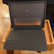 Neuwertige Logitech Rugged Folio für iPad (7., 8. Generation) – Schutzcase mit Smart Connector und strapazierfähiger, spritzwassergeschützter Tastatur, Deutsches QWERTZ-Layout.