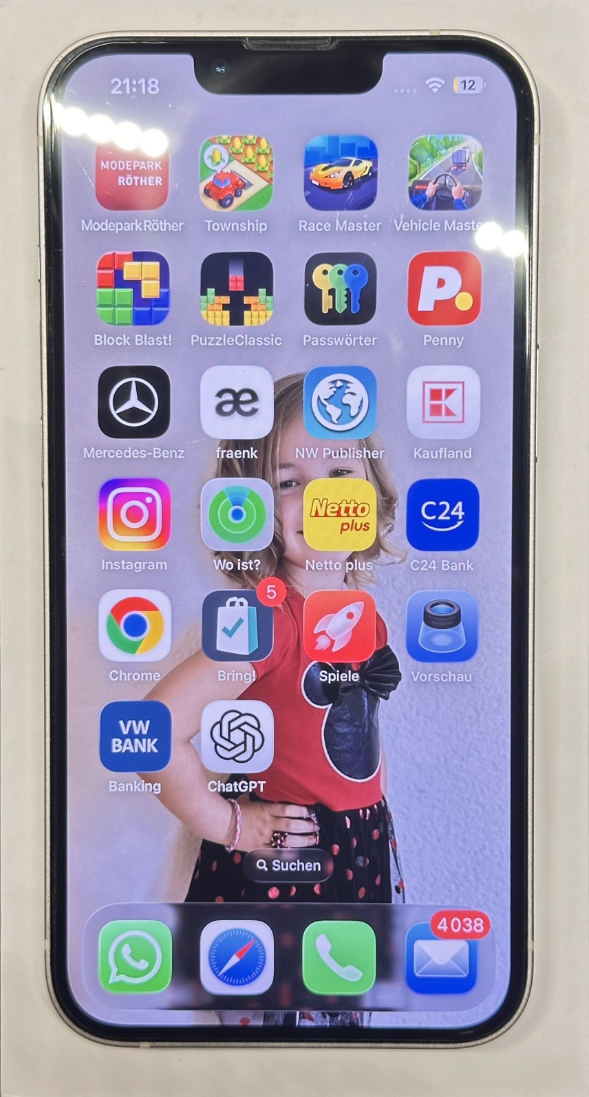 Hallo! Verkaufe mein iPhone 13 mit 128 GB in weiß! Das Gehäuse ist in sehr gutem Zustand, wie den Bildern zu entnehmen ist. Das Display hat Kratzer, welche bei eingeschalteten Bildschirm nicht auffallen. Der Batteriezustand liegt bei 83 % (hochleistungsfähig). Keine Sachmängelhaftung, da Privatverkauf.