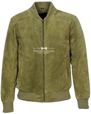 Neue Herren Echt Olivgrüne Wildleder Bomberjacke Weiche Wildlederjacke