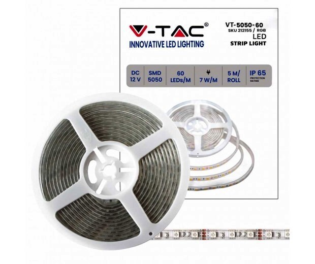 STRISCIA LED VT-5050 100LM/MT 12V STRIP 5MT 7W/MT RGB IP65 (212155)