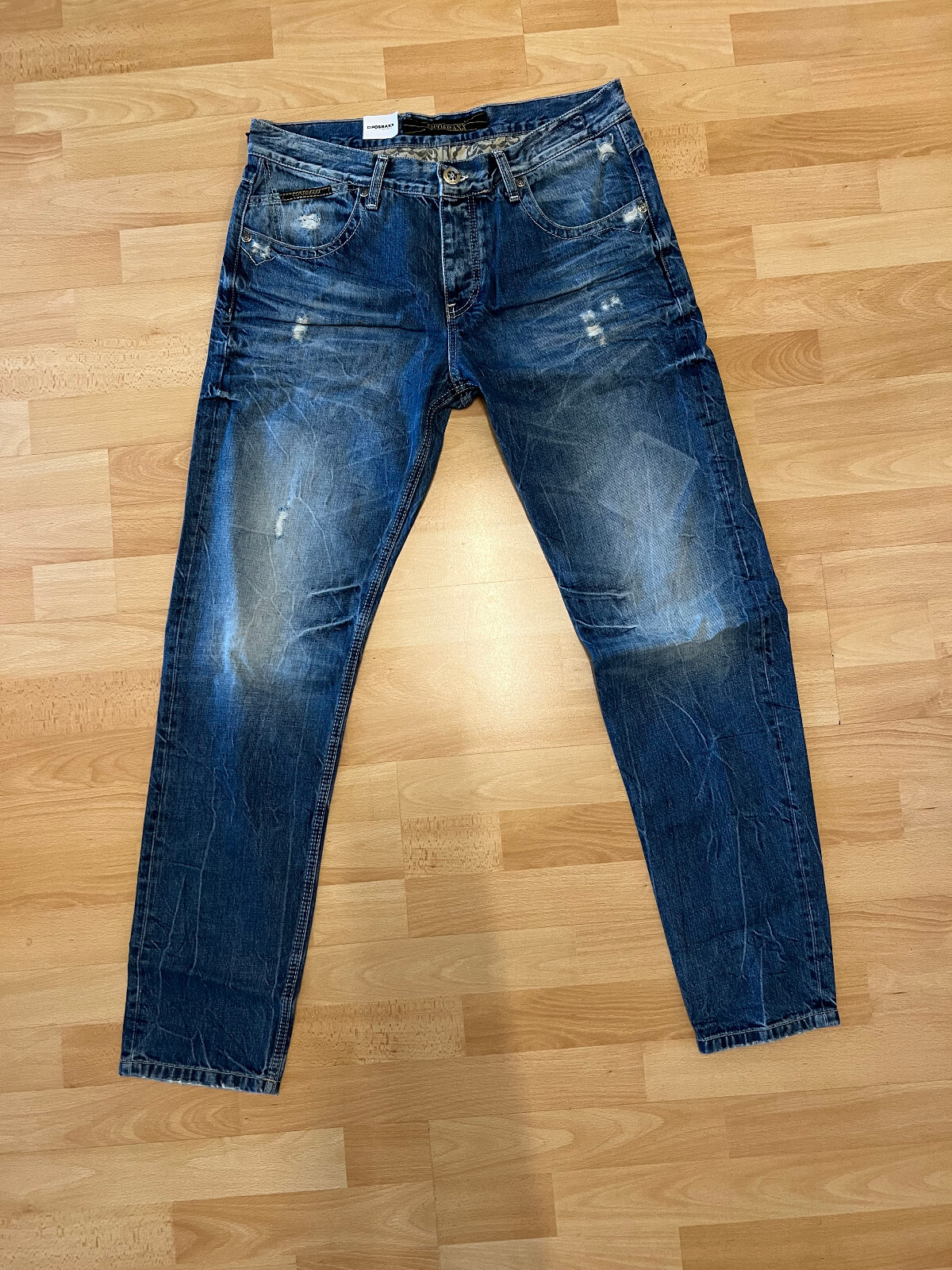 CIPO & BAXX HERREN NÄHTE REGULAR FIT JEANS HOSE USED STELLEN 355 BLAU NEU