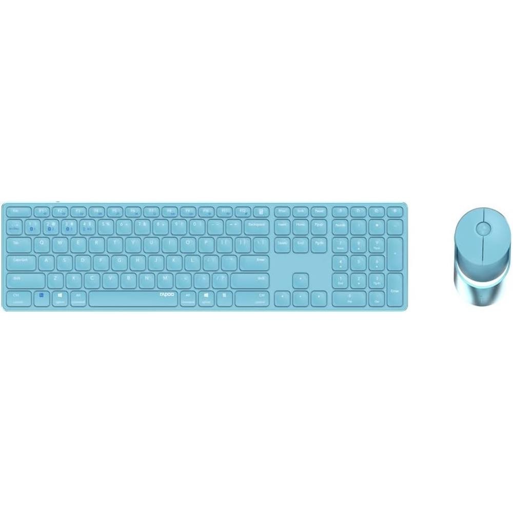 Rapoo 9850M kabelloses Tastatur-Maus Set Wireless Deskset 1600 DPI Sensor wiederaufladbarer Akku flaches Aluminium Design DE-Layout QWERTZ - blau. Rapoo 9850M kabelloses Tastatur-Maus Set DE Blau. Sie können alle Ihre Geräte mit dem 9850M-Set verbinden.
