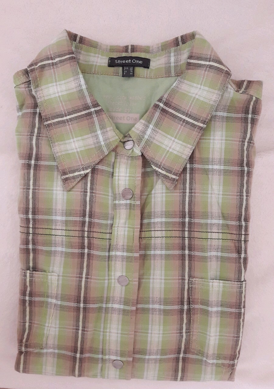 "1/1 Langarm" & "3/4- Arm" -. Knöpfe, die sich an der Bluse. Auf der Innenseite der Bluse, auf. Arm - Länge : ca. 62cm - Hiervon sind ca. 7cm die Manschetten - Länge -. Manschetten - Weite : ca. 24cm -.