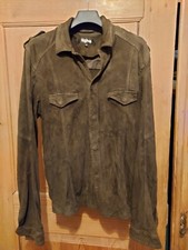 Tigha Herren Hemd Jacke Leder oliv grün khaki, Größe M