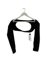 MOTEL Top Crop Trägershirt schwarz Polo Stretch gerippt Baumwolle Kragen Knopfleiste M