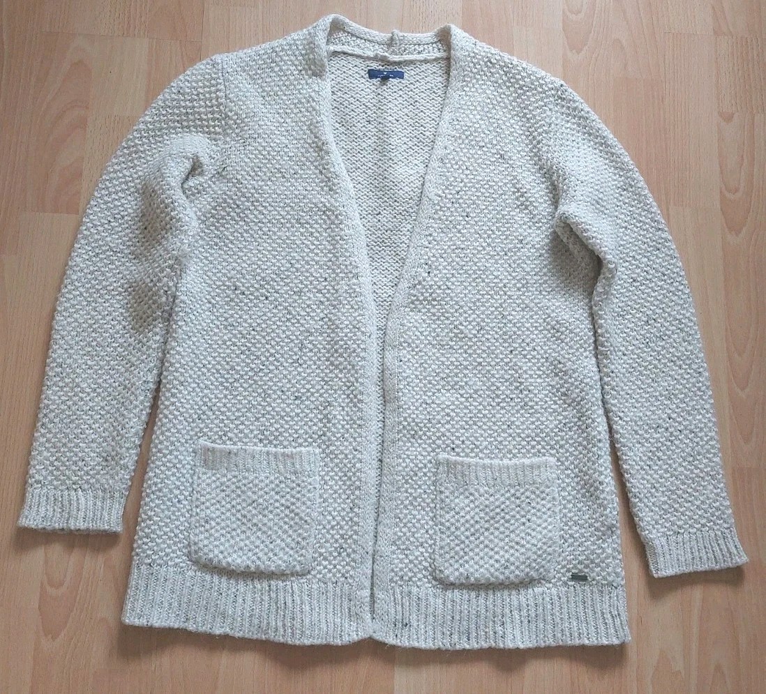 Cardigan Tom Tailor Strickjacke Damen Gr.M Weiß/Melirt Wolle Top