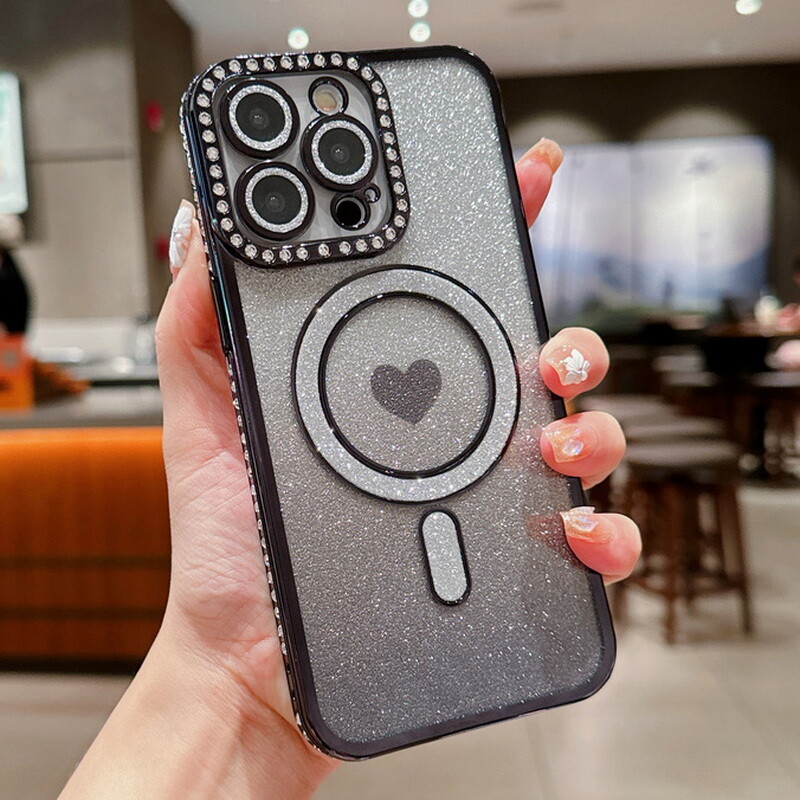 Handy Hülle Für iPhone 16 15 Pro Max 14 13 12 11 Herz Magnetisch Glitzer Case