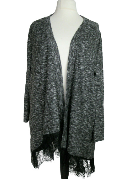 Sheego Damen Strickjacke Schwarz Cardigan Strick Jacke Übergröße Spitze Stretch