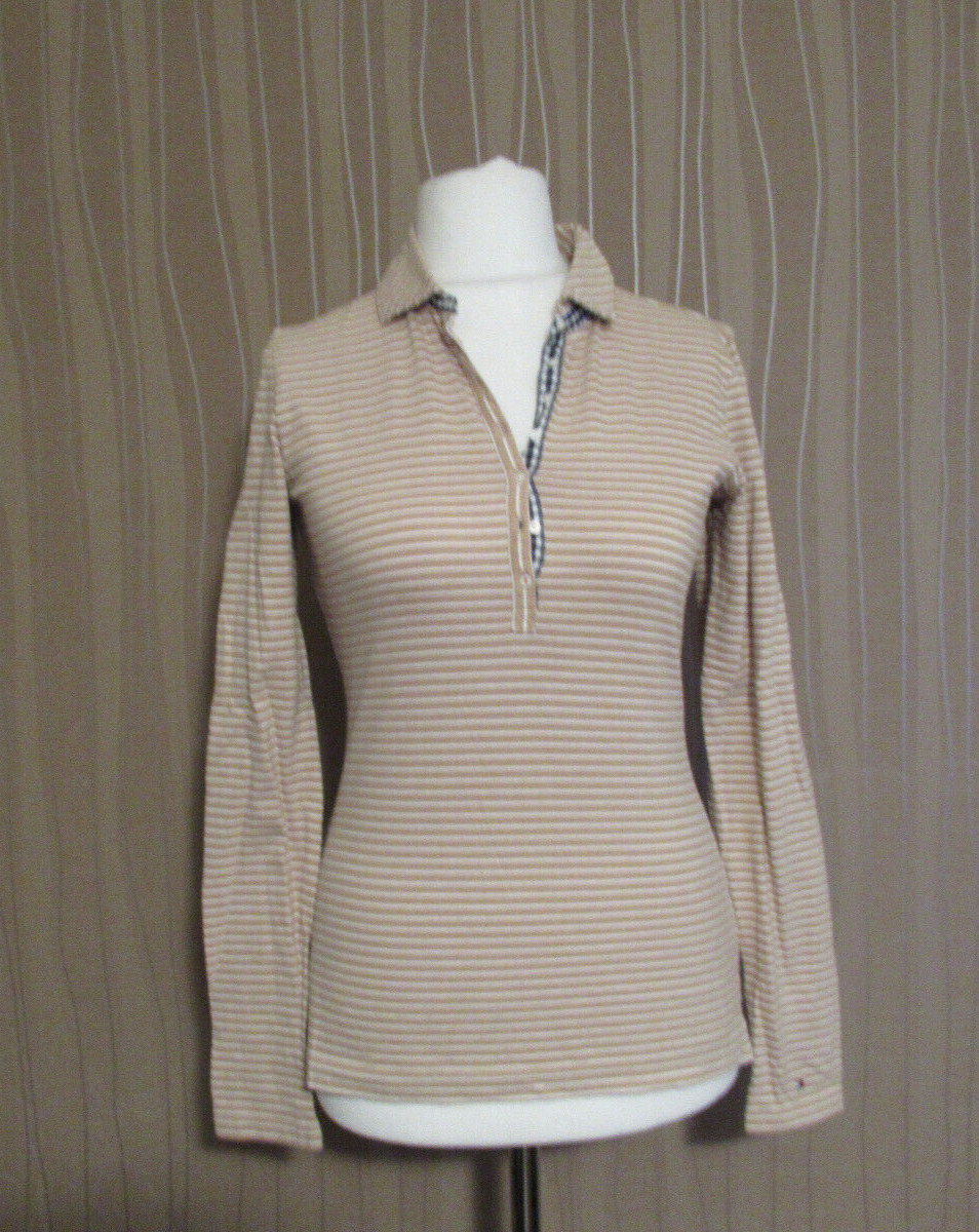 32/4 Tommy Hilfiger Damen Poloshirt Gr. S beige weiß gestreift Langarm Kragen