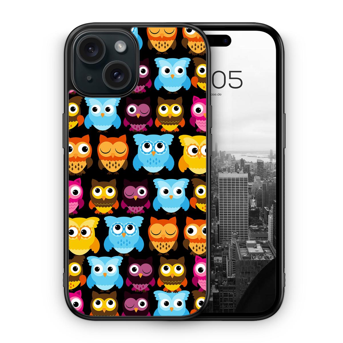 Bunte Eulen BK Silikon Hülle für z.B. iPhone 13 14 15 16 17,Plus Pro Max uvm. Ti