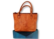 Handgefertigte Kuriertasche aus Ziegenleder. Die Farbtonfarbe jeder Tasche kann je nach den niedrigen und hohen Temperaturen aus dem Herzen der Wüste The Thar variieren. Das Leder erhält keine chemische Behandlung.
