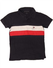TOMMY HILFIGER Boys Polo Shirt 13-14 Years White Striped Cotton DH08.