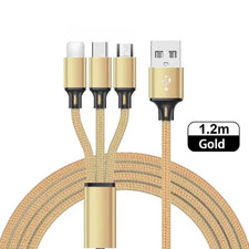 1,2m Multi USB Ladekabel 3 in 1 Typ-C Micro iPhone Huawei Rot Universal