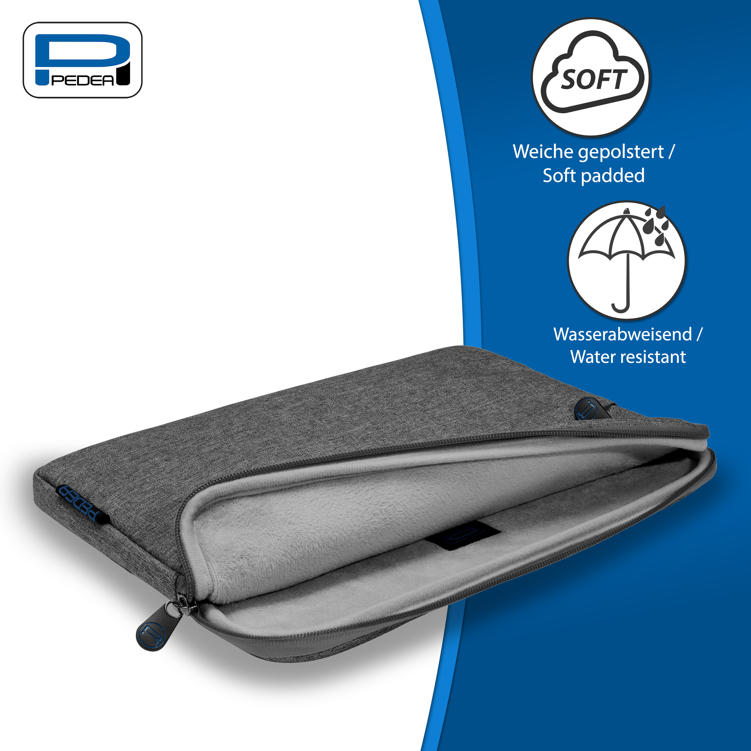 Der lange Reißverschluss ermöglicht einen leichten Zugang zu Ihrem Gerät. Einfache Handhabung durch langen Reißverschluss. Optimaler Schutz für Display und Gehäuse. optimaler Schutz. langer Reißverschluss.