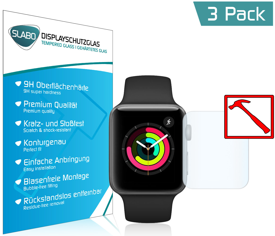 3 x Slabo PREMIUM Panzerfolie für Apple Watch Series 3 (42mm) Tempered Glass