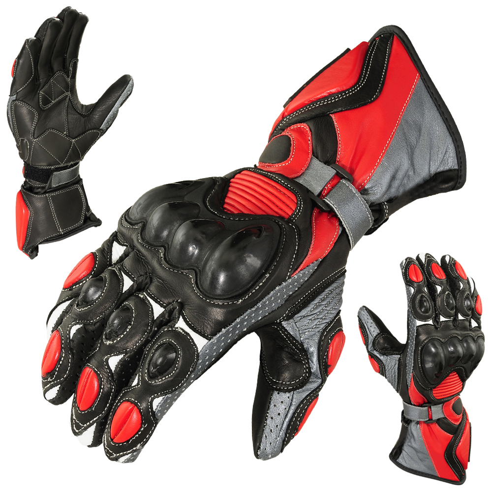 Motorradhandschuhe Motorrad Rennsport Tourenbiker Pro Rindsleder rot 1655 M