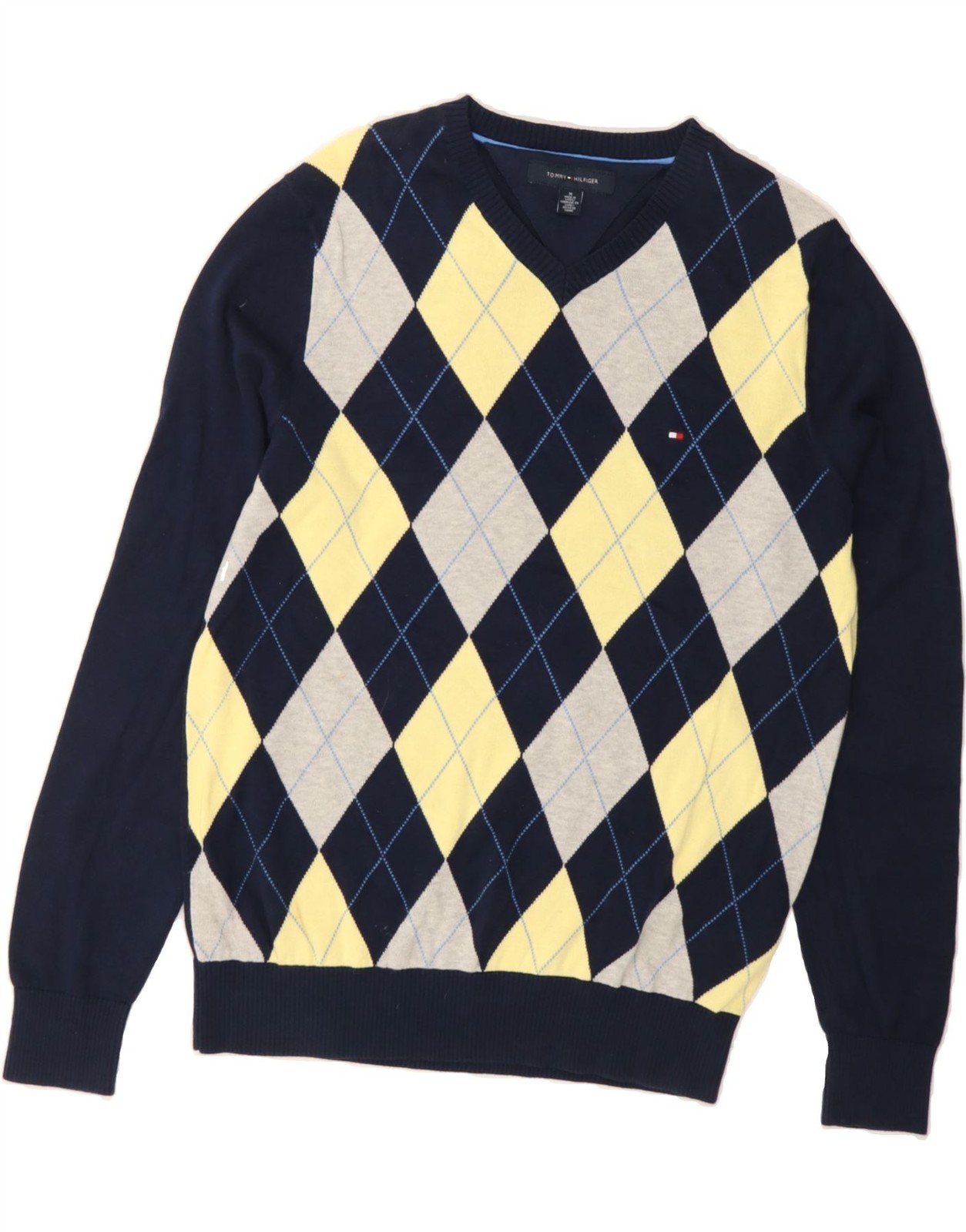 TOMMY HILFIGER Herren V-Neck Pullover Sweater Medium Navy Blau Argyle/Diamant CO30
