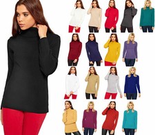 Damen Langarm hochgeschlossen Polo Rollkragen Roll Pullover Oberteil schmale Passform Größen 4-22