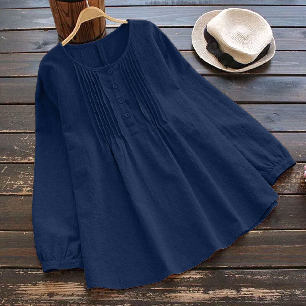 Übergröße Damen Longshirt Langarm T-Shirt Knopf V-Neck Bluse Baggy Hemd Tunika