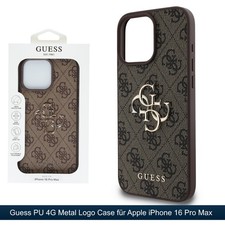 Original Guess Handy Hülle Cover für iPhone 14 Pro Case PU 4G Metal Logo Grau