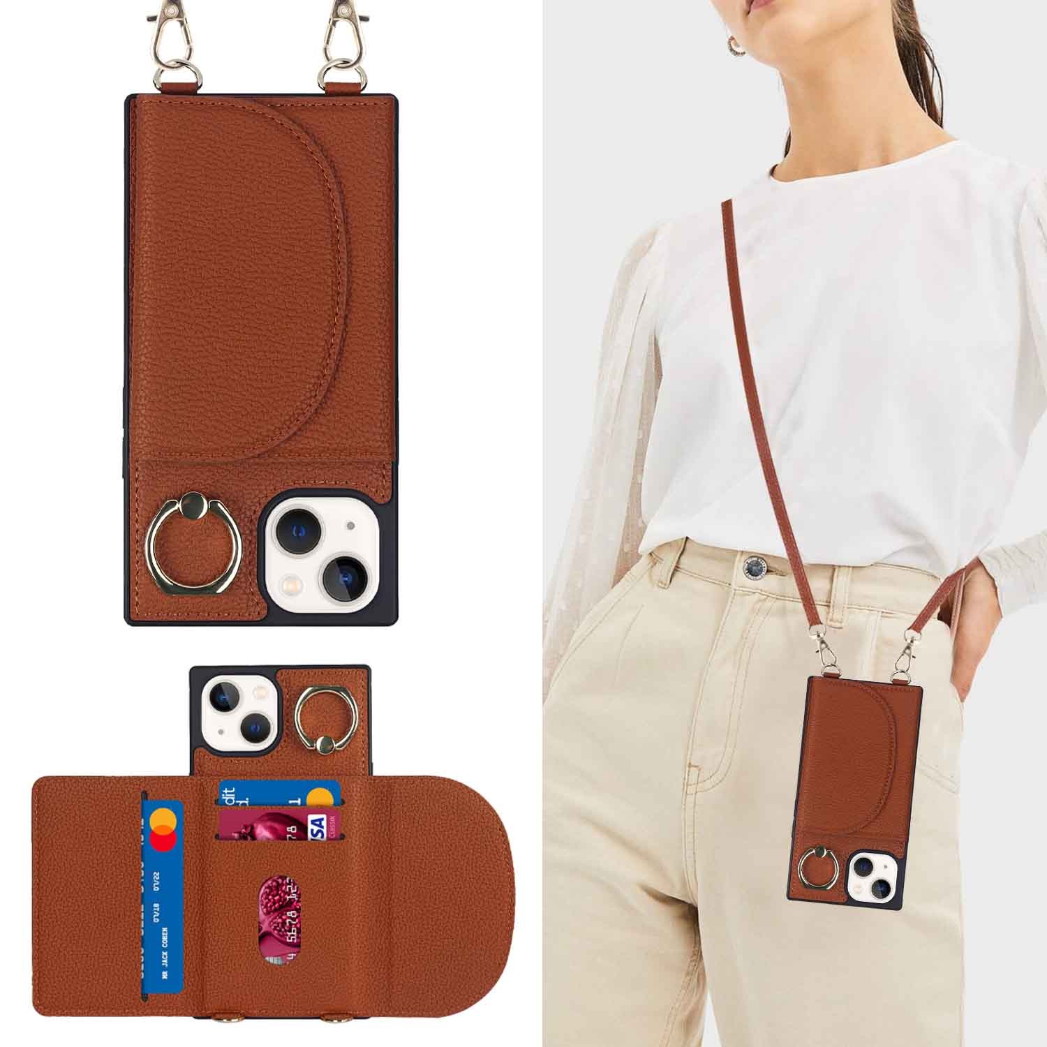 Handy Hülle mit Band Case Kordel Handykette Tasche Schutz Folie Kartenfach Seil