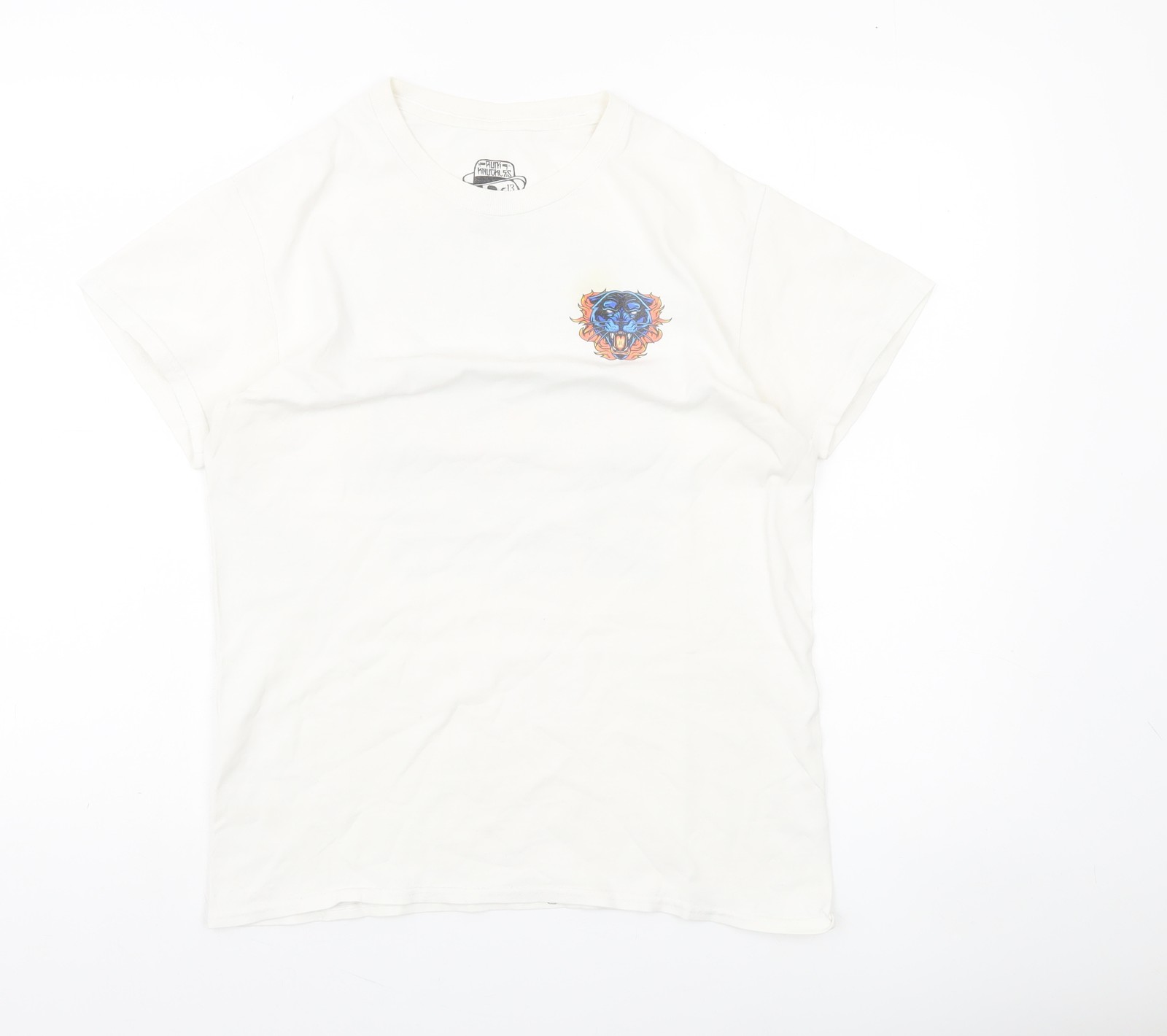 Features: Lightweight, Graphic Print, Breathable. Pattern: Graphic Print. Fabric Type: Jersey. Material: Cotton. Size Type: Regular. Fit: Regular. Material Breakdown: 100% Cotton. Colour: White.