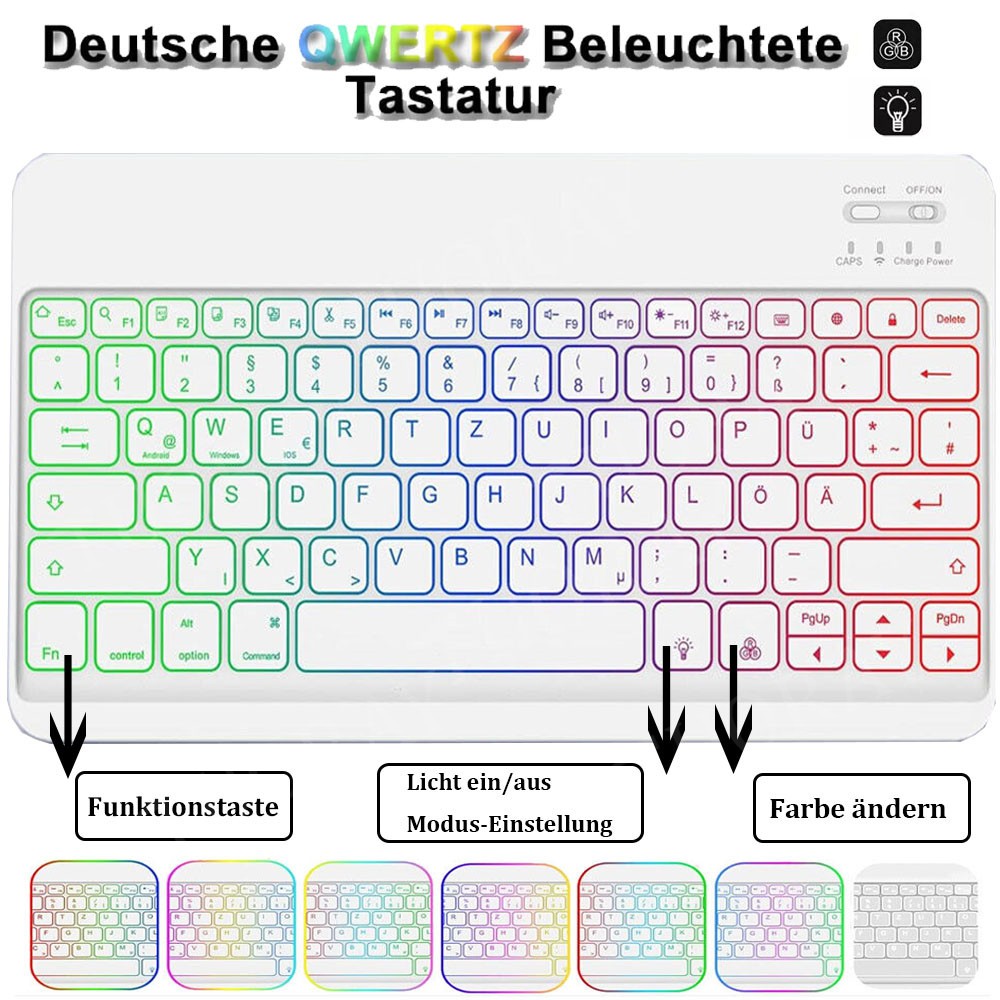 Universal Hülle mit Beleuchtet Tastatur Für 9.7" 10" 10.1" 10.2 " 11" Tablets DE