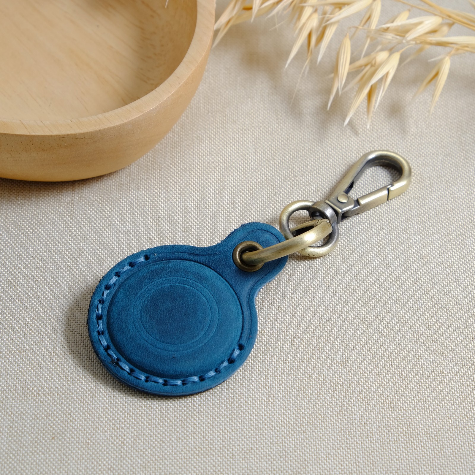Das Material besteht aus Top-Grain-Leder und ist besonders widerstandsfähig gegen Abnutzung. Es behält lange seine Form und Struktur. Mit stabilem Ring und Karabiner ideal zur Befestigung an Schlüsseln, Taschen oder Gepäck.