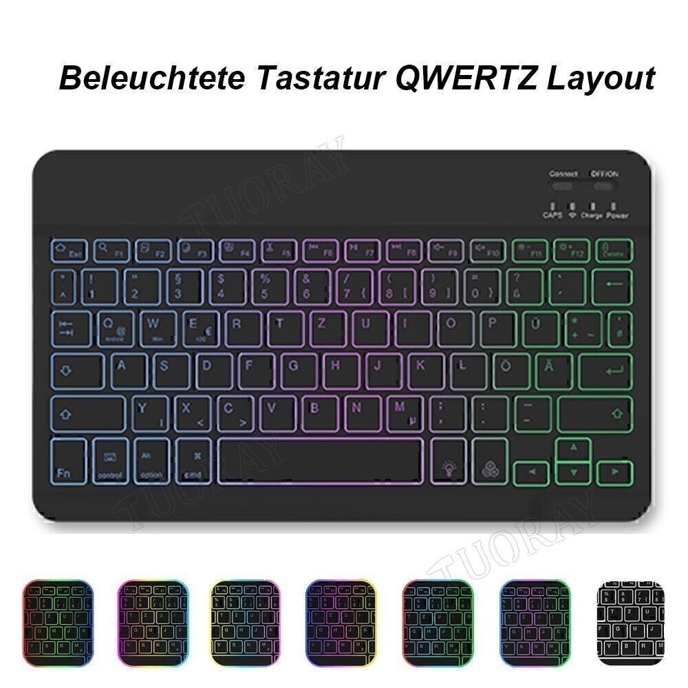 Für Blackview Tab 11 12 13 15 16 Pro 70 9 90 WiFi QWERTZ Bluetooth Tastatur Maus. Die Reichweite beträgt bis zu 10m/33ft. RGB QWERTZ Tastatur mit Hintergrundbeleuchtung. Tasten: 4 Tasten. Für Xiaomi Mi Pad 5 6 7/7 Pro Redmi Pad 11" Touchpad Beleuchtete Tastatur Maus.