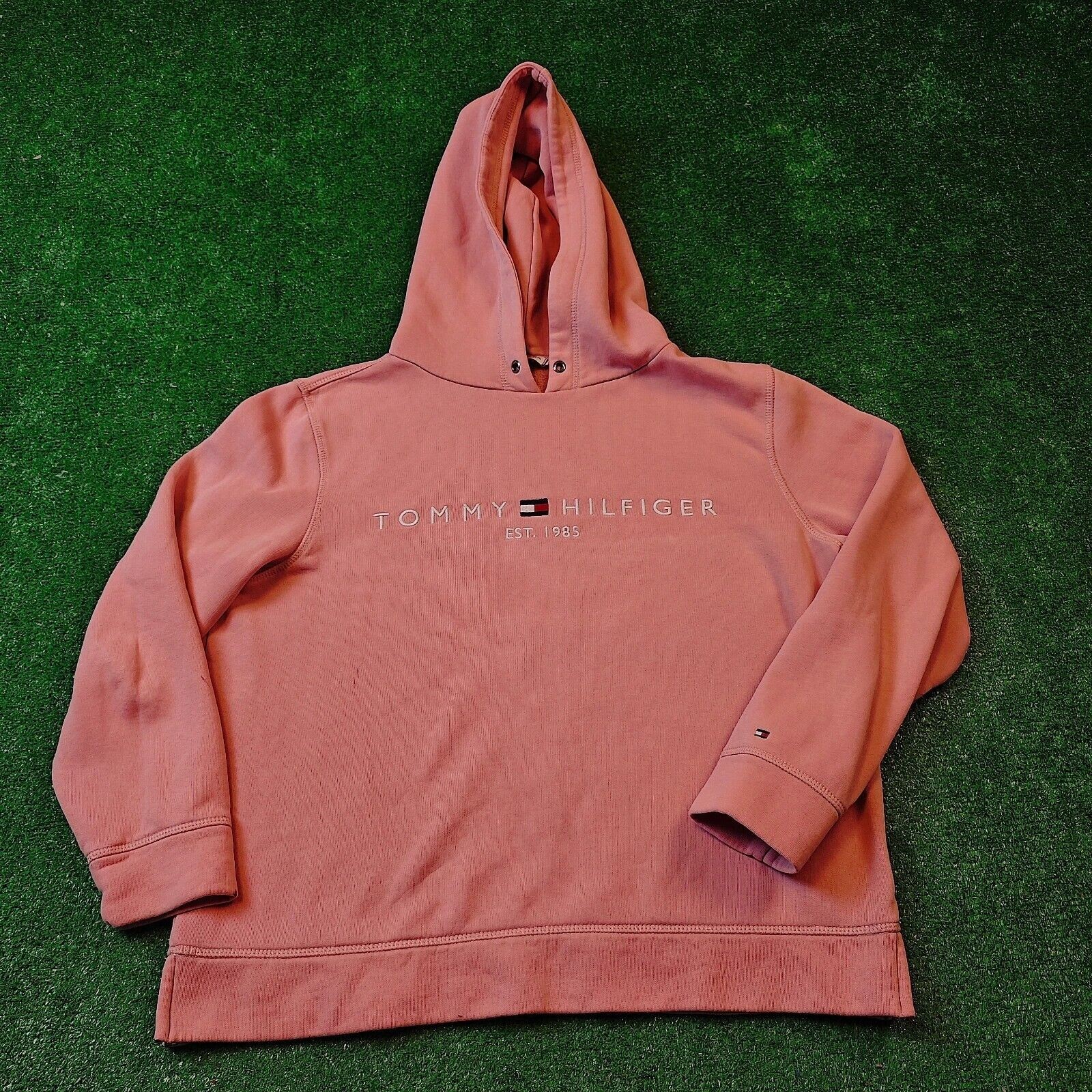 Tommy Hilfiger Hoodie Damen Medium Pink Spellout Logo Pullover Baumwollmischung