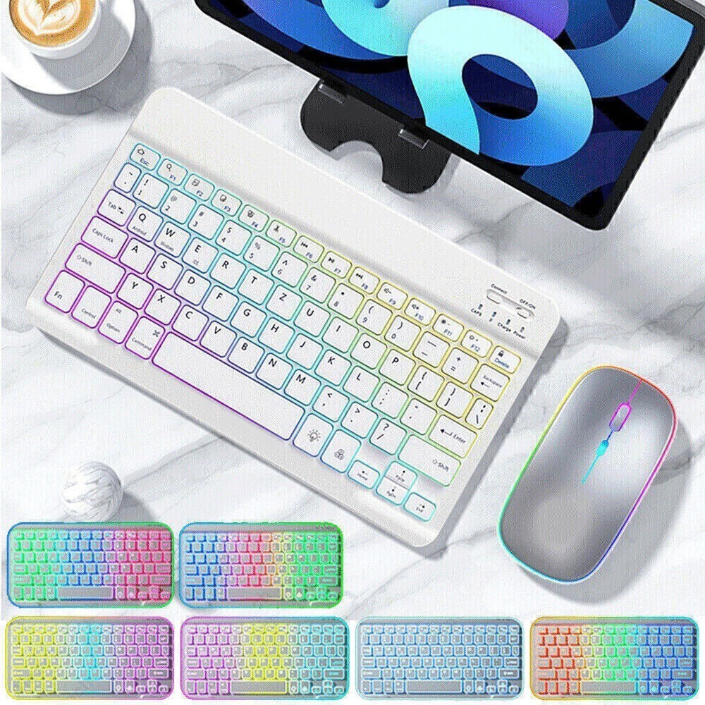 QWERTZ Tastatur Funk Maus iPad Android PC Beleuchtete Wireless Kabellos Keyboard