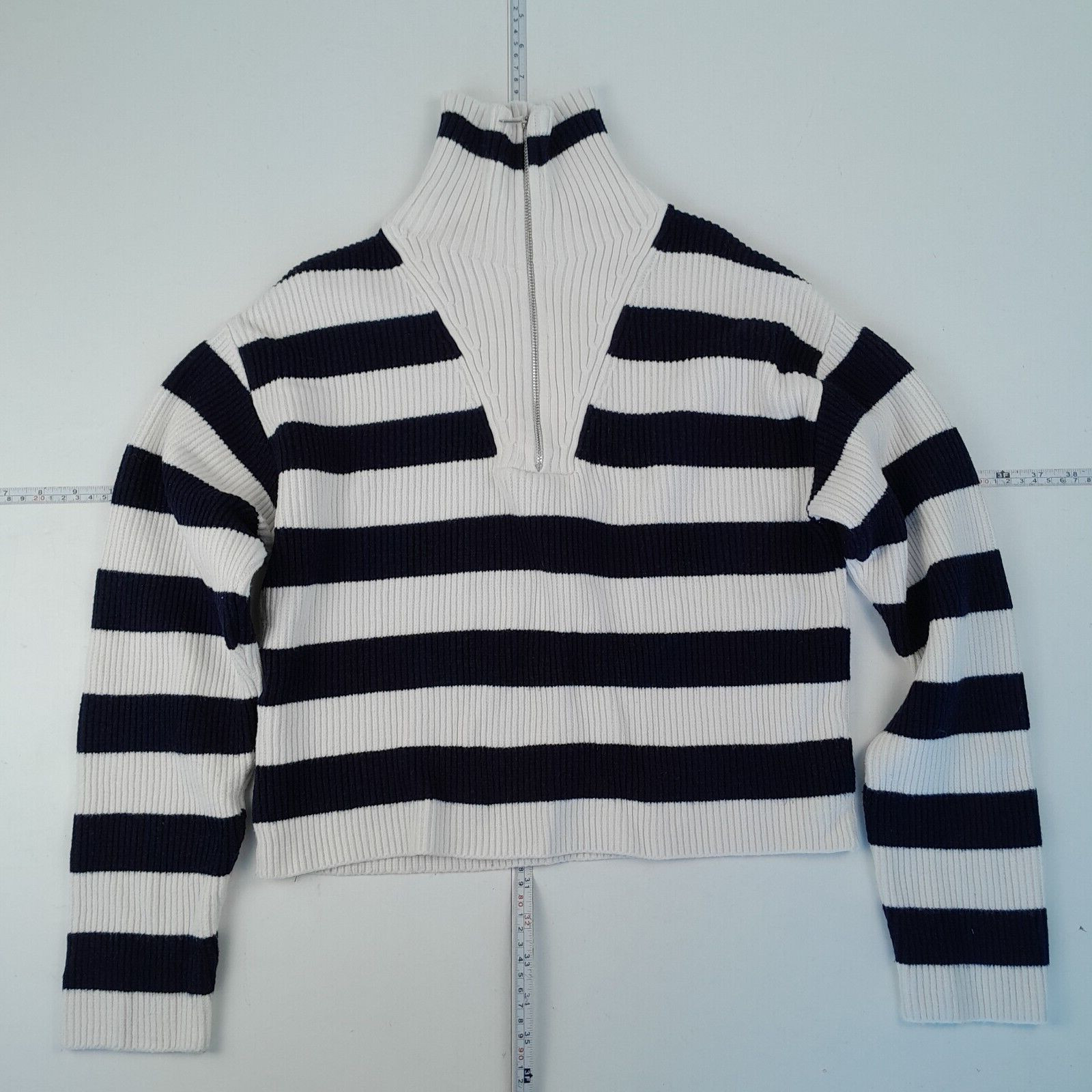 MNG Sweatshirt Small schwarz weiß Damen gestreift Cropped Pullover 1/4 Reißve...