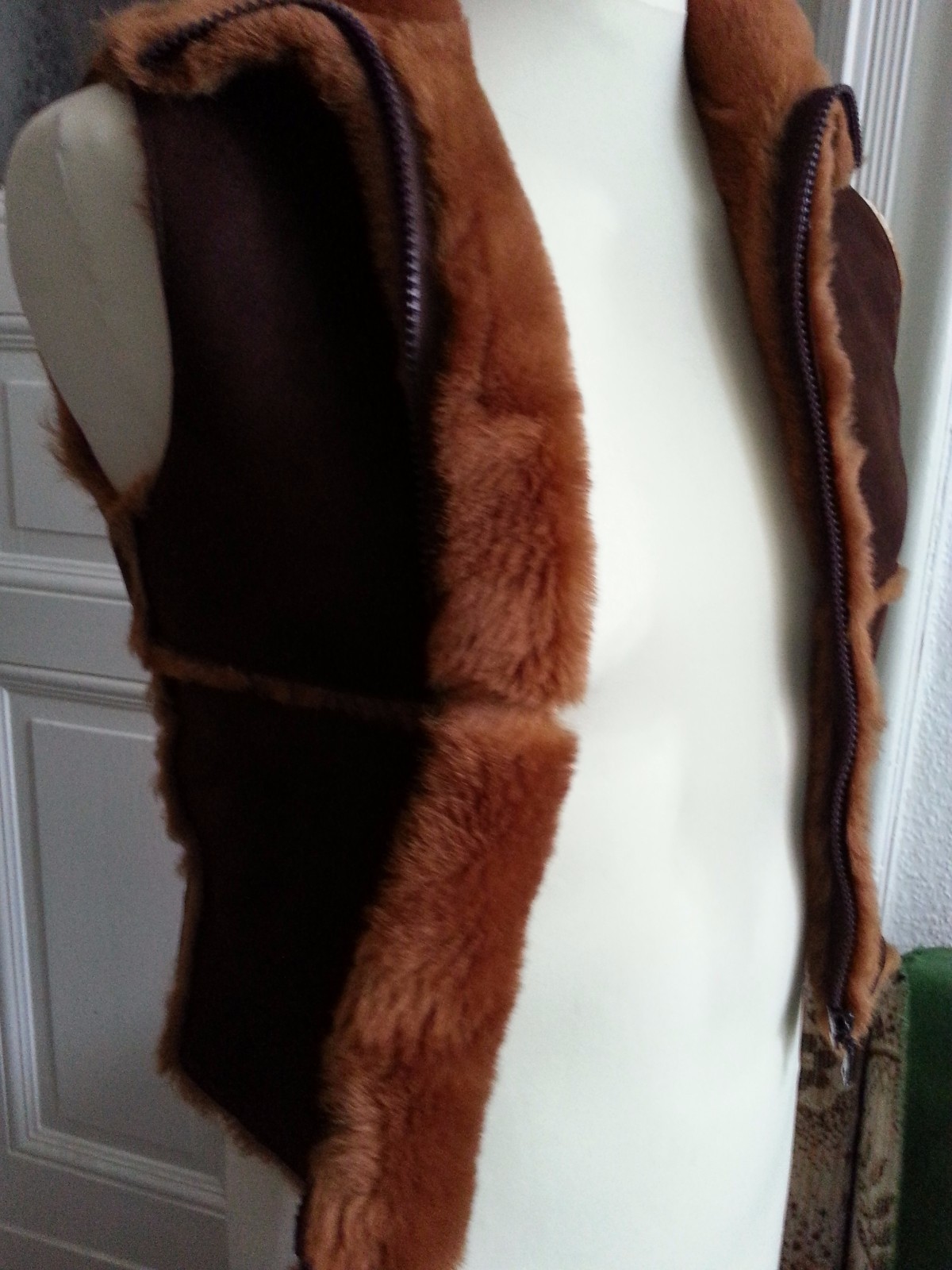 NEU Offset P&C designer Damen Lammfell Fellweste Lederweste Gr S echt Fell rost