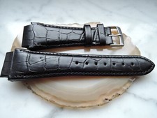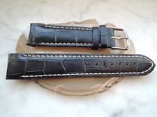 Leder Uhrenarmband Ersatzband Rundanstoss schwarz mit blauer Naht 20/26 mm b20