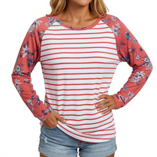 KangaROOS Damen T-Shirt Langarm Rosa V-Ausschnitt Muster Gr. 32-42 NEU (4321)