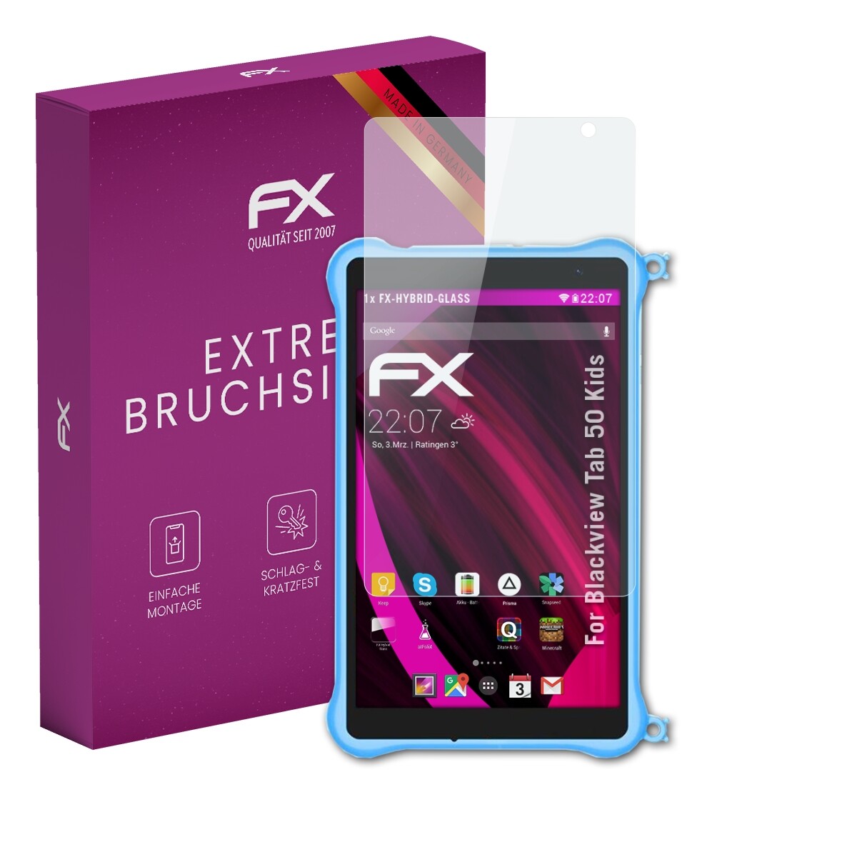 Ultradünn und superhart - 9H - besser als Echtglas: atFoliX FX-Hybrid-Glass Glasfolie für Blackview Tab 50 Kids - Made in Germany! Verkauf und Versand durch @FoliX - Original und direkt vom Hersteller! Montage Zubehör inklusive: Reinigungstuch, Montagewerkzeug (Rakel), Link zur mehrsprachigen, bebilderten Montageanleitung (inkl. Montagevideo).