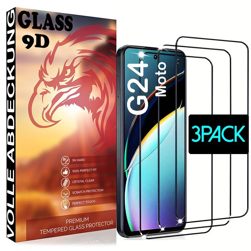 3x Full Screen Für Motorola Moto G24 Schutzglas Panzerfolie Echt Hartglas 9D