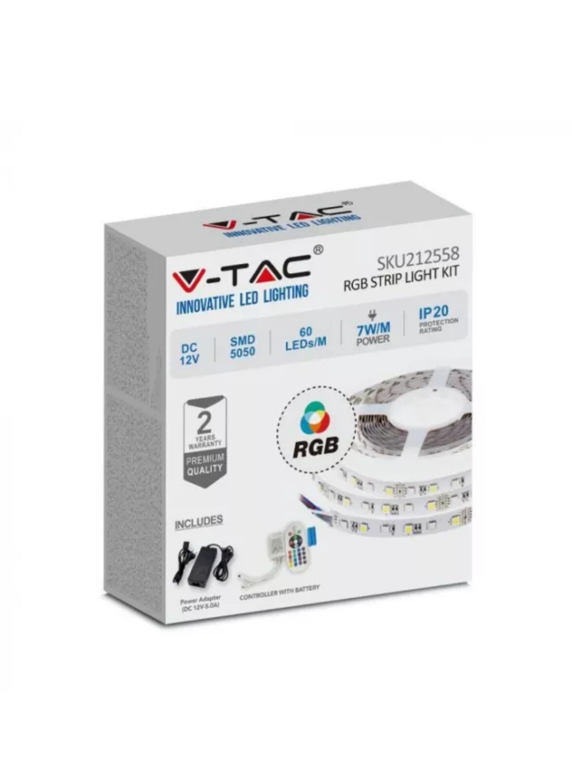 V-TAC 5 Meter LED Streifen RGB Set Lichtset mit Fernbedienung DC12V IP20 5050 SMD