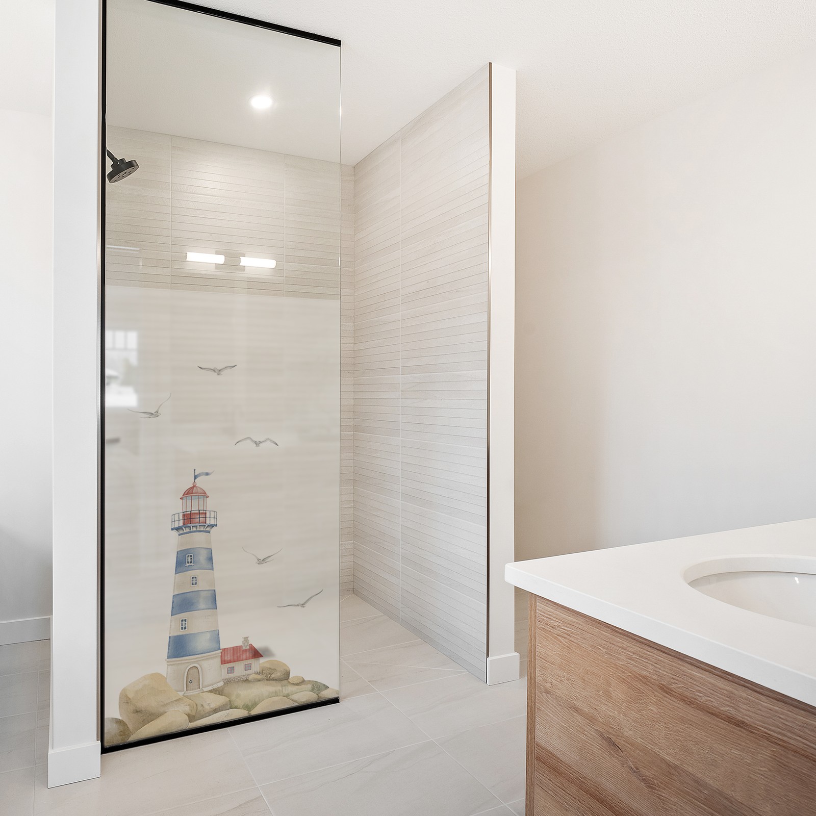 Wasserfeste Sichtschutzfolie mit Motiv zum Bekleben von Duschkabine, Fenster, Glastüren et. in verschiedenen Größen.