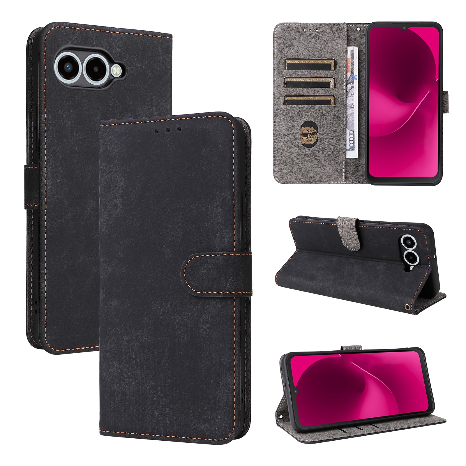 für T-Mobile T Phone 3 5G Case, Retro RFID Leder Geldbörse Card Stand Cover