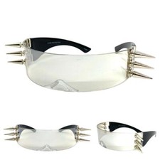 Biker Gothic Punk Rock Raver Shield Party SUNGLASSES Chromlins Silber Spike