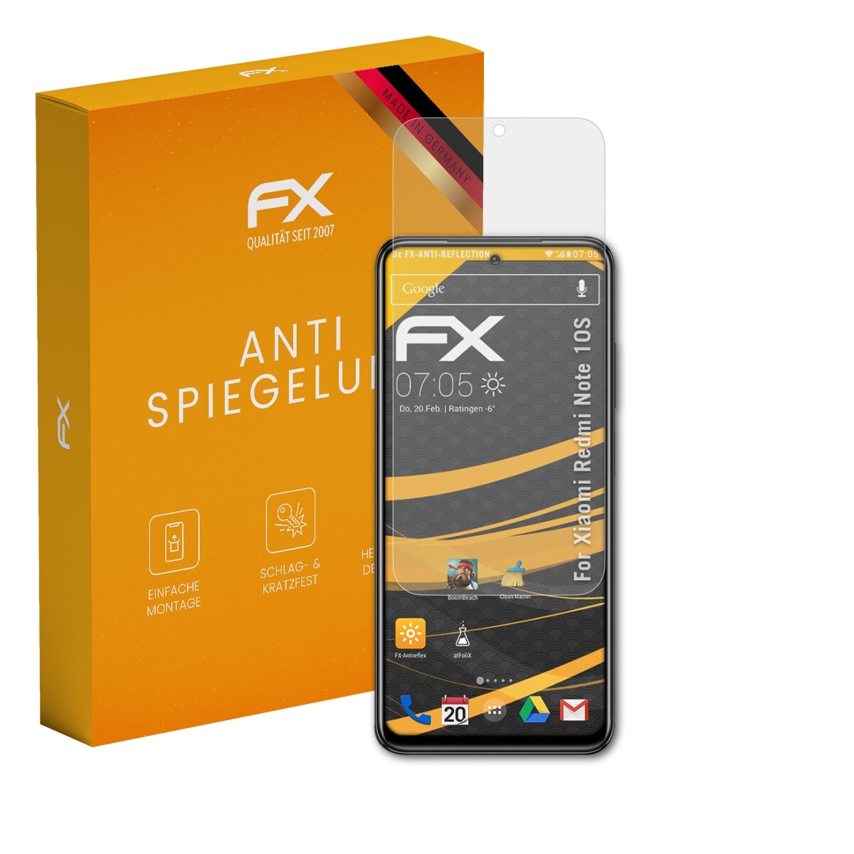 Entspiegelnd und stoßdämpfend: atFoliX 3 x FX-Antireflex Schutzfolie für Xiaomi Redmi Note 10S - Made in Germany! (!) Gewölbter Displayrand, die Schutzfolie ist bewusst kleiner konstruiert. (!) Verkauf und Versand durch @FoliX - Original und direkt vom Hersteller! Montage Zubehör inklusive: Reinigungstuch, Montagewerkzeug (Rakel), Link zur mehrsprachigen, bebilderten Montageanleitung (inkl. Montagevideo).
