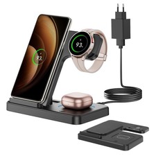 GEEKERA Induktive Ladestation. Für die neueste Samsung S25/S24/S23/S22/S21/S20/Z Fold/Flip Serie, Galaxy Watch 7/6/6 Classic/5 Pro/5/4/4 Classic/3/Active2/Active und Galaxy Buds3 Pro/Buds2 Pro/Buds live/Buds plus.