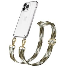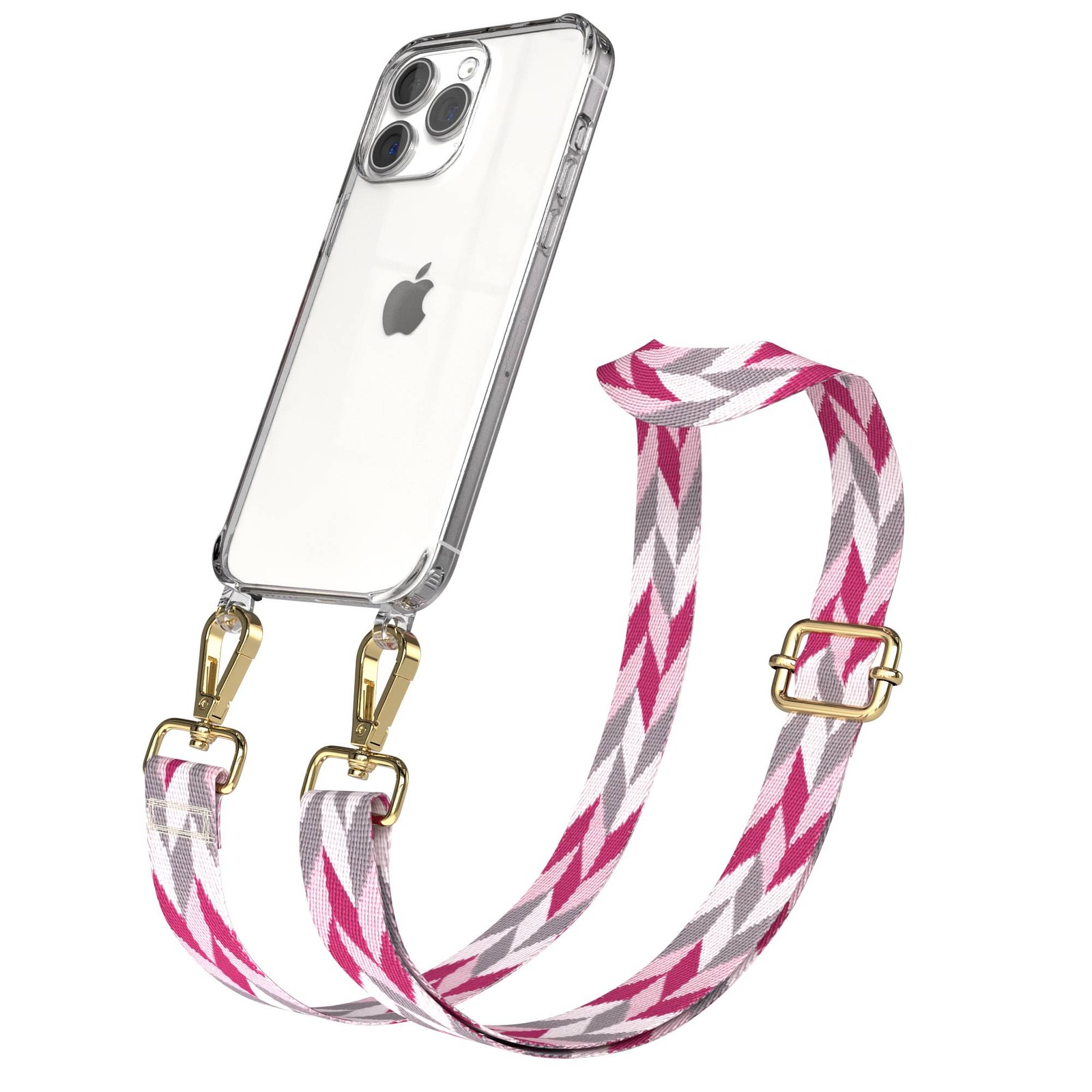 Hülle mit Band für Apple iPhone 15 Pro Max Cover Kette Pink / Grau Mix - Gold