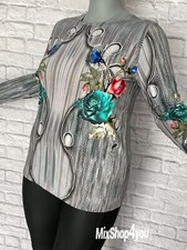 Zauberhaftes Longshirt mit farbbrilliantem Inkjet- Druck in Lila-Grün-Bunt allover. Die exzellente Qualität: Elastik-Jersey, aus 95%Viskose und 5%Elasthan.